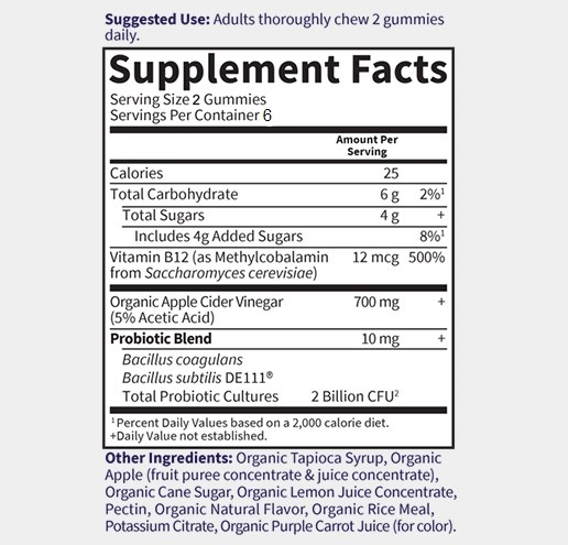 Ingredients For ACV Gummies - (3 Day Supply - 6 Gummies)